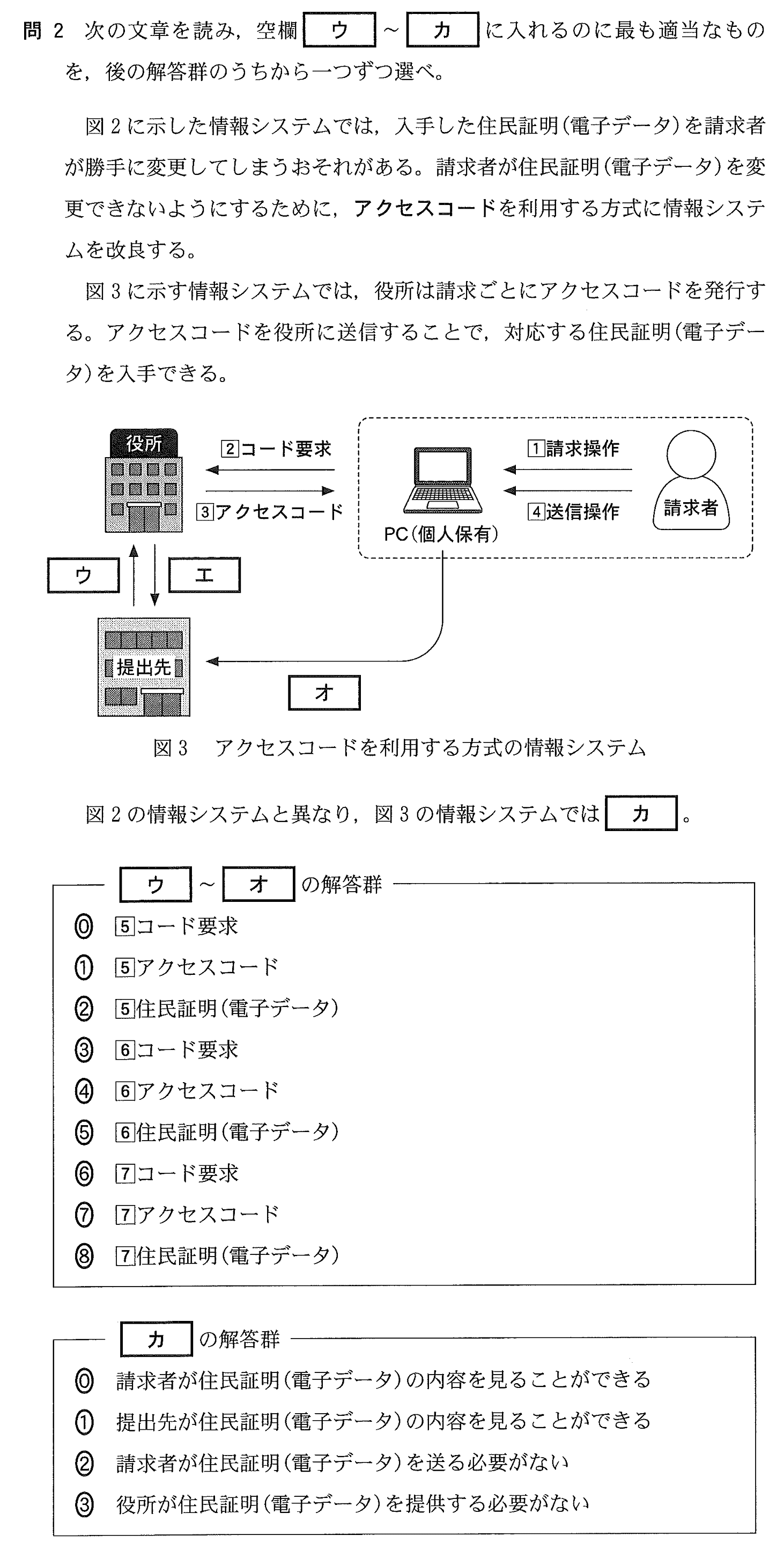 住民証明システム(アクセスコード)[令和8年 第2問 A 問2 P.14-P.15]
