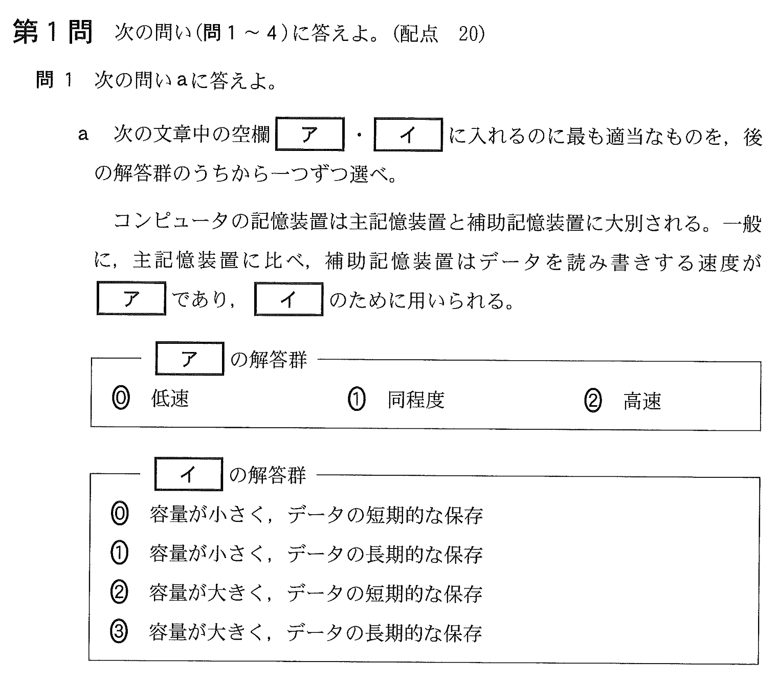 補助記憶装置[令和8年 第1問 問1a P.4]