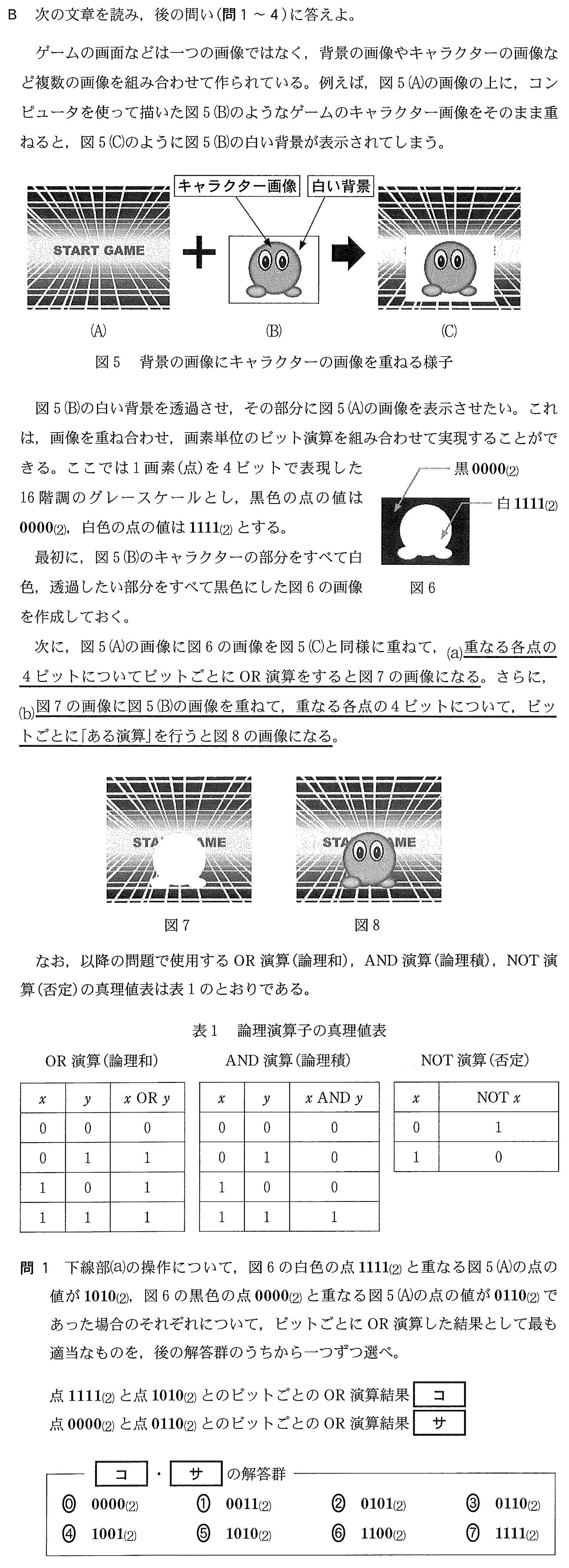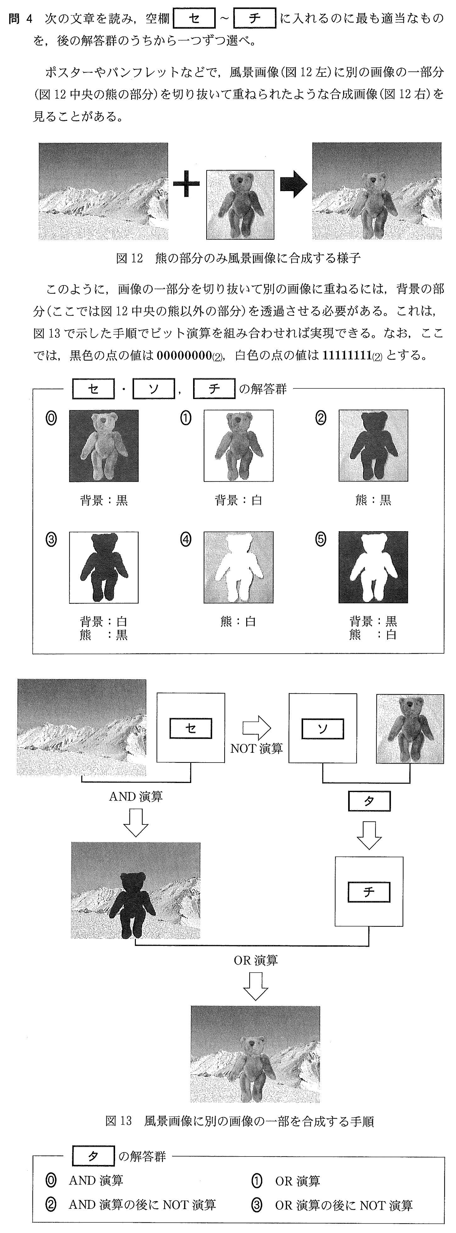 画素のビット演算(画像合成の手順)[令和8年 第2問 B 問4 P.22-P.23]