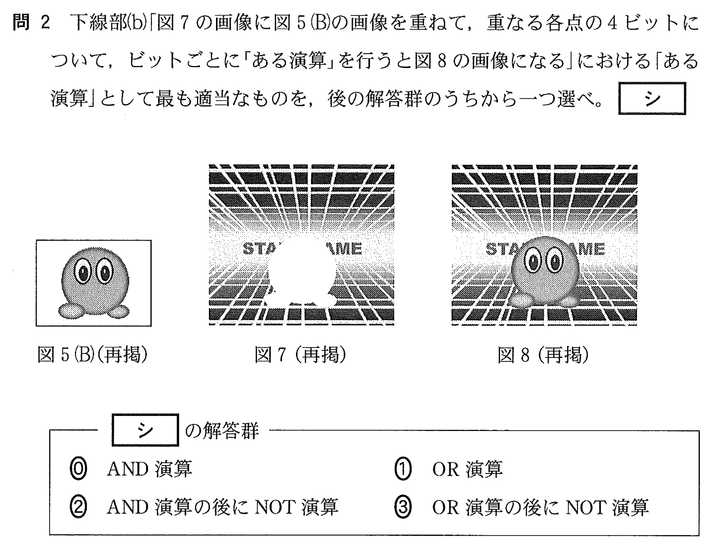 画素のビット演算(画像で原理を確認)[令和8年 第2問 B 問2 P.20]
